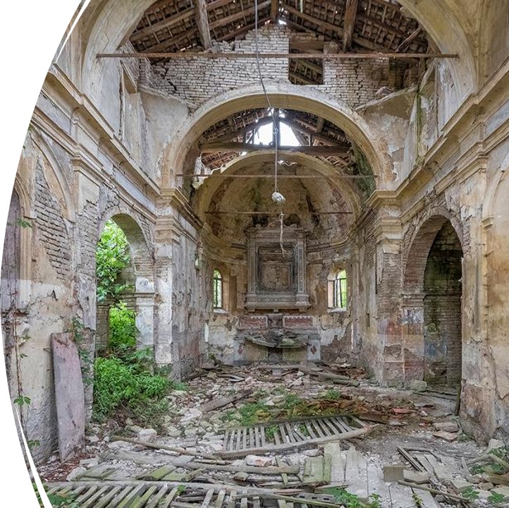 Foto: verfallende Kirche KI-generierd